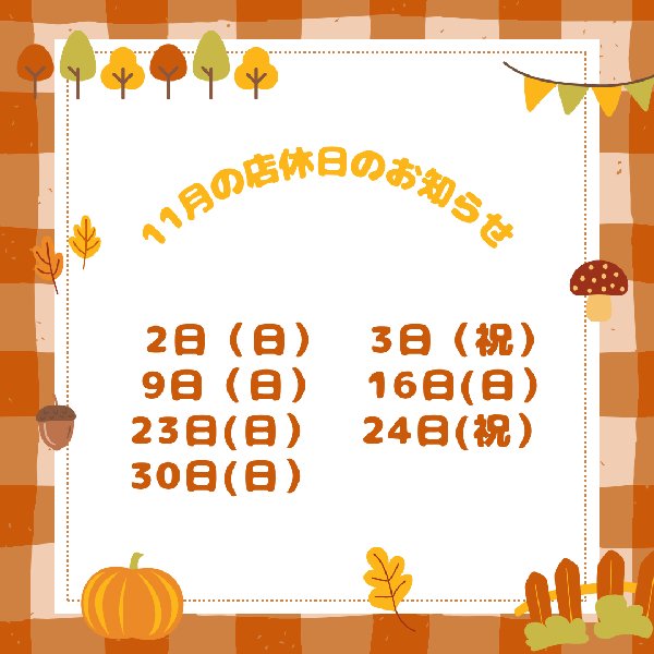 11月の店休日のお知らせ